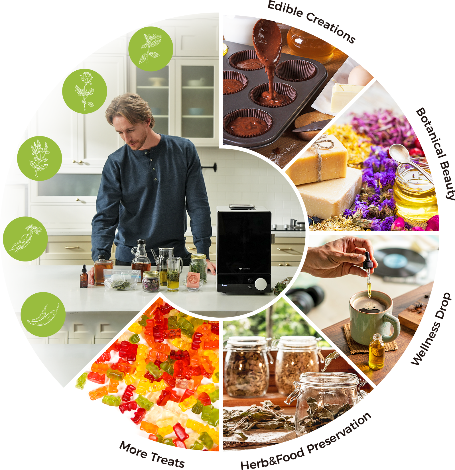 Infuse way faster, with more load, and still higher extraction rate. Lab-grade infusion in just 25min max* with more than twice processing capability and up to 90% yield to capture every drop of botanical power efficiently.