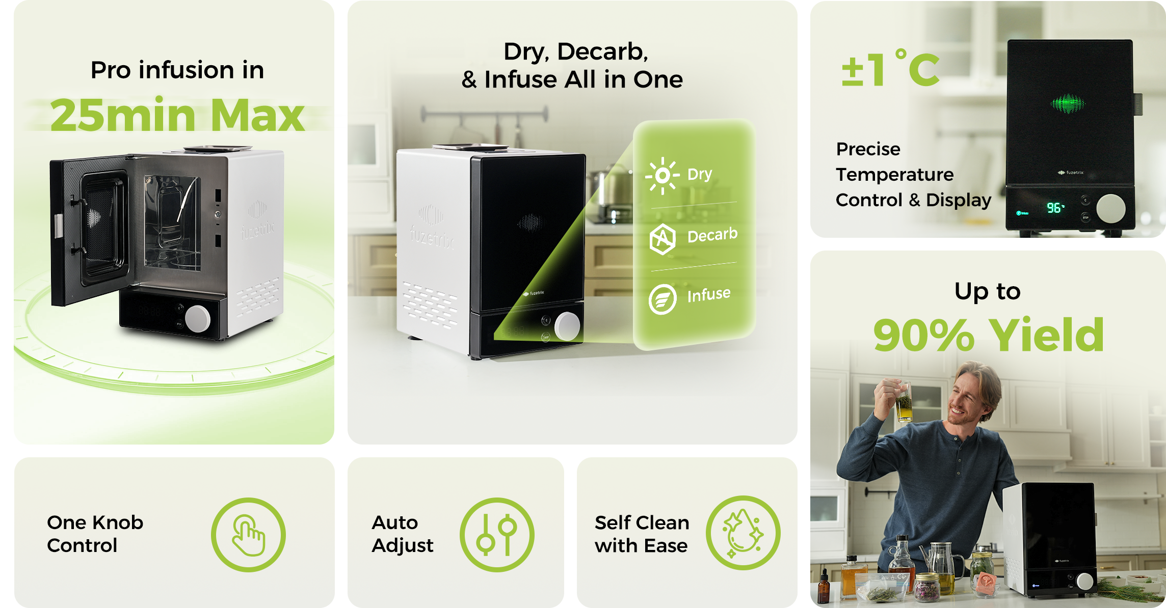 Controlled to Perfection — High-precision temperature sensing works in sync with the system to deliver ±1°C precision, enabling high-efficiency drying, decarbing, and infusion — every time.